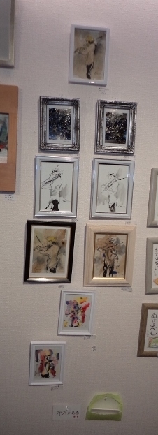 ギャラリーの中に入ると、100人近くのいろいろな作家さんの、いろいろなタイプの本当に小さな作品ばかり、ところ狭しと展示されています。今回ご案内をいただいた、沖元かおるさんの作品を探してみると、入口からほぼ正面の位置に展示されていました。