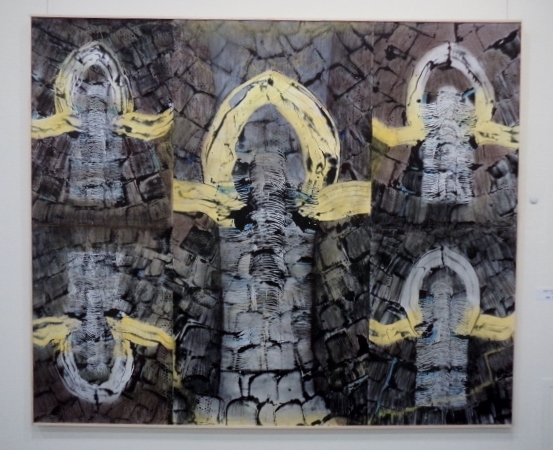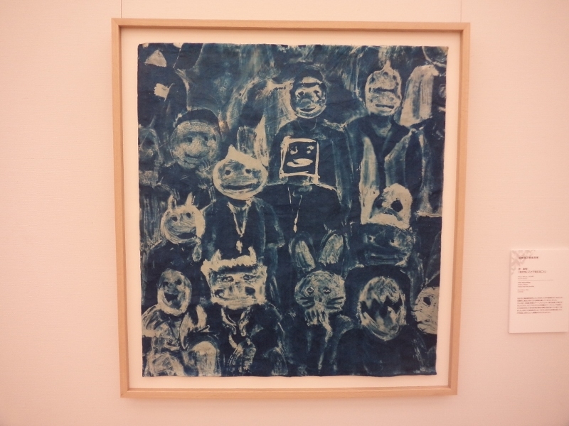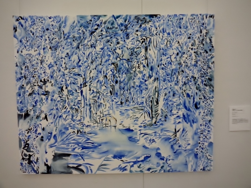 井澤由花子さん「生命についての記号と視覚」は、画面全体が青い色で統一されていて、画面真ん中あたりに、鹿らしい動物が小さく描かれています。鹿をじっと見ていると、雪深い森の奥に迷い込んだような錯覚を覚えました。