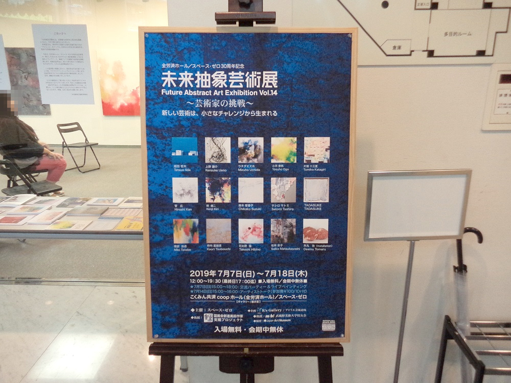 「 未来抽象芸術展-芸術家の挑戦-新しい芸術は、小さなチャレンジから生まれる」を見に、全労済ホール/スペース・ゼロ に行ってきました。新宿駅の南口改札を出て、甲州街道沿いから一つ裏道に入った角のところに会場の入り口を見つけました。 15人の作家が「チャレンジ」をテーマにして制作した作品が展示されているそうです。