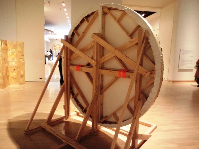 裏に回ってみると、この通りでした。円形の枠にキャンバスを張るところや、固定の仕方など、いろいろと苦心された跡が伝わってきて、別の意味で感動ものです。