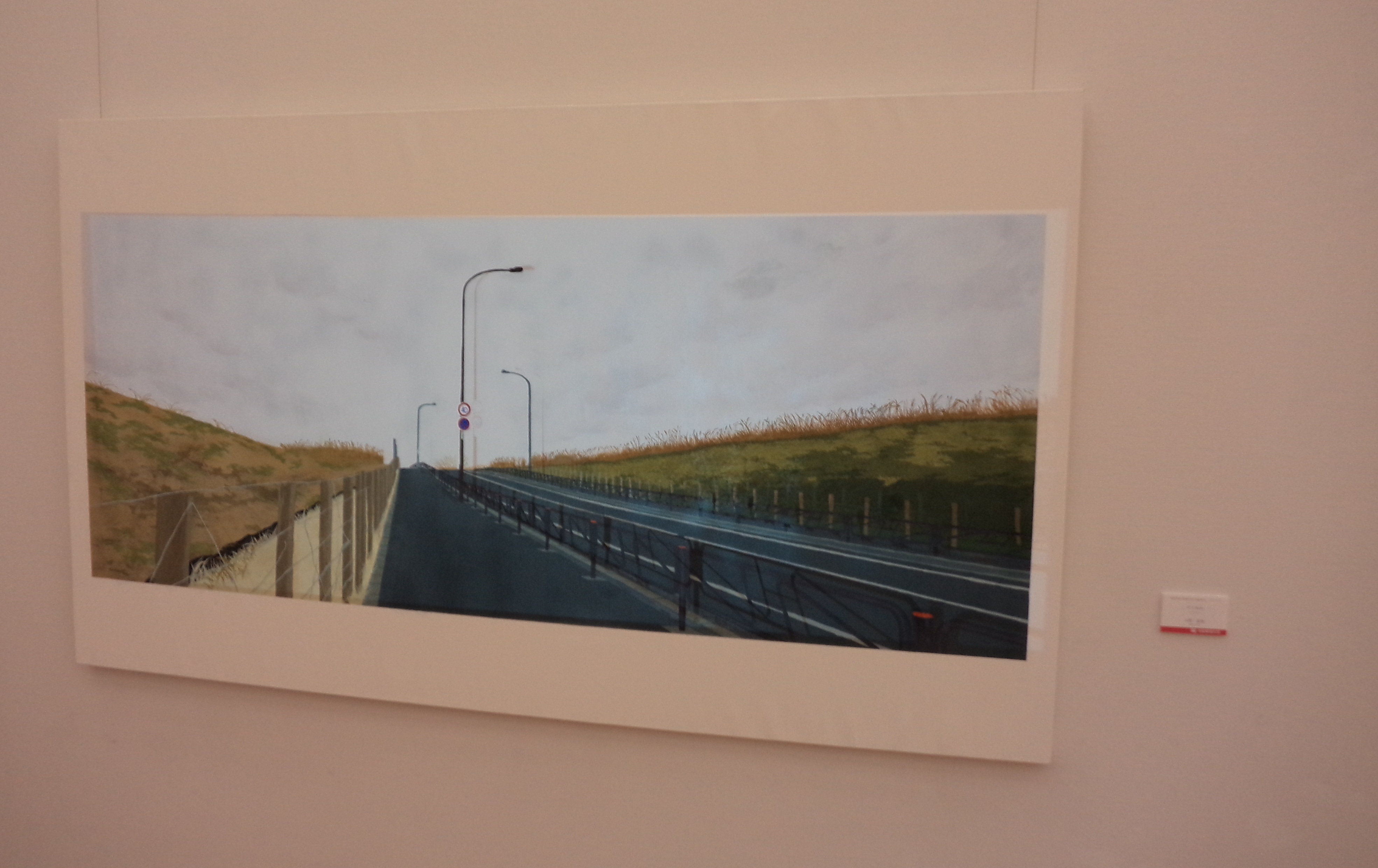 ぐるりと室内を一回りして、一通り作品を拝見しました。これまで拝見した沖元さんの個展では、「井の頭公園のバイオリニスト 」がテーマだったり、「抽象画 」だったりしたのですが、今回の個展では、特に決まったテーマは無いように見えます。沖元さんにお聞きしたところ、壁に貼られた一枚の紙に沖元さんのメッセージが書かれているので、読んでみてほしいとのこと。
